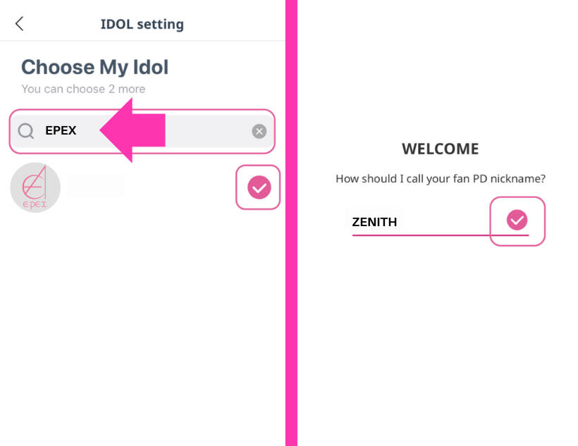 - Don't forget to agree to all of the terms and conditions by ticking all of the circles. The application will guide you.4. Choose your Idol and your Bias
