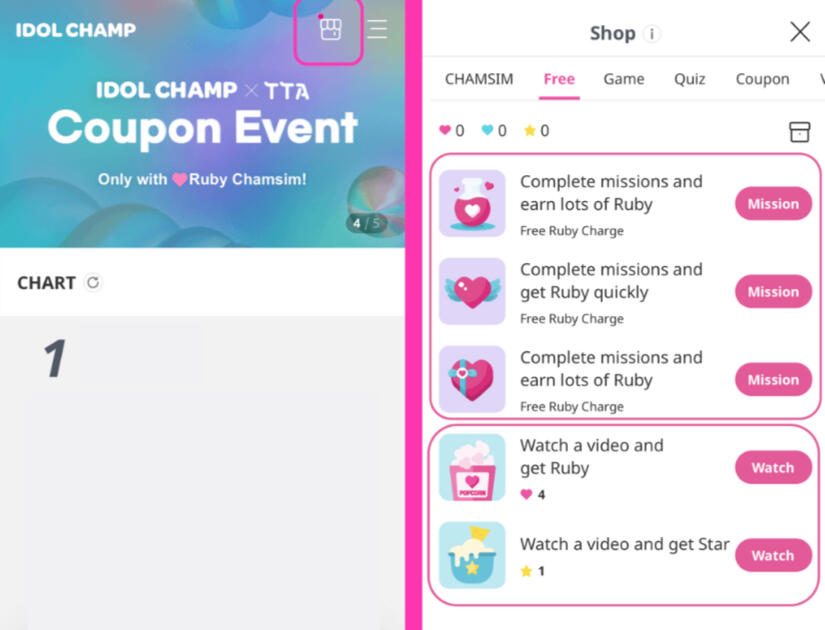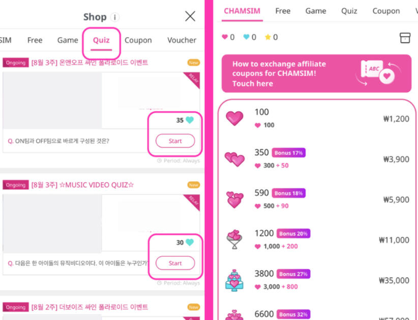 -Used for: Voting, live streaming, chart rankings, quizzes and fandom ads support.2. Ruby Chamsims (Red Hearts)