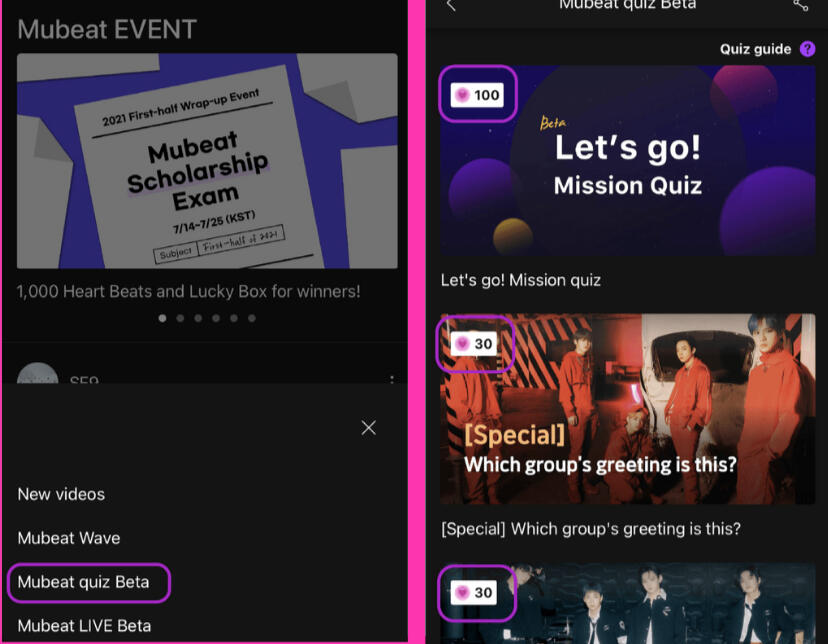 > Click on "Mubeat quiz Beta" and choose a quiz that you think you know the answers to.