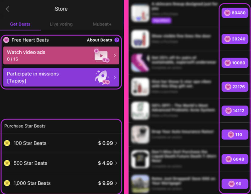 - Click the option button below “Watch video ads” and you'll see mission offers.3. You can also answer mubeat quizzes